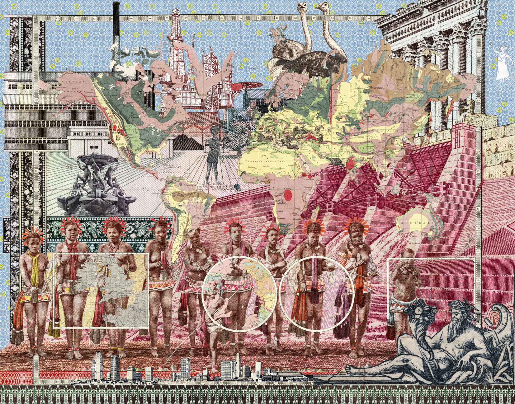 Main Image: Malala Andrialavidrazana Figures 1856, Geological Structure, 2018. Courtesy of 50 Golborne, Alessandro Casciaro, C-Gallery, Dilecta Malala Andrialavidrazana’s Figures series employs the potential of intersecting information and transforming support material. By associating diverse elements such as regional and world atlases or bank notes, Andrialavidrazana’s compositions reframe the knowledge we think we have of the world.