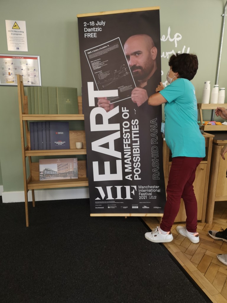 So hence this evolution of you know, what I called this manifesto, which is not exactly a manifesto, it’s more of an invitation to join a discussion or a discourse to identify phenomena parallel to art, which may have always existed, or it can, may exist as an intentional practice to look at creative expression in life itself rather than its limitation. So instead of painting sculpture, storytelling, music dance, or drawing or photography or sculpture, if one can find, ways of manifesting creative expression or politics in life itself rather than its limitation. So therefore, I taught that the Manchester international festival, when I was invited to participate last year, I thought this will be a great venue to share this manifesto that I put together with the help of a few friends, which as I said is not a manifesto in the real sense of the word is because it’s called E A R T