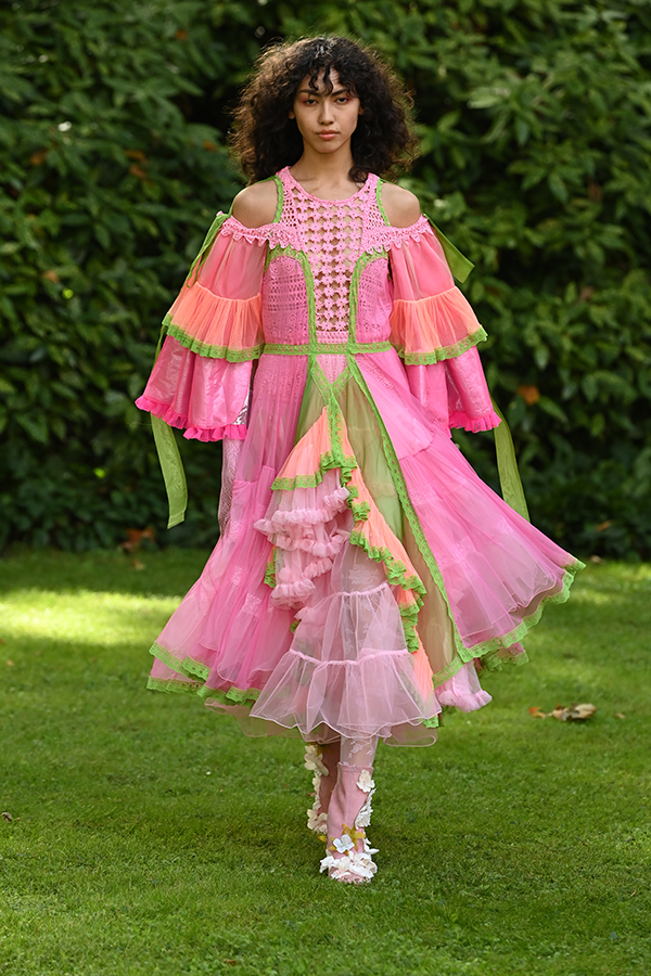 The first day of London Fashion Week – which is now a physical/digital schedule – got off with a burst of PINK on 16 September with a collection by Bora Aksu paying homage to Dutch socialite and muse Mathilde Willink and her “buoyant“ life.