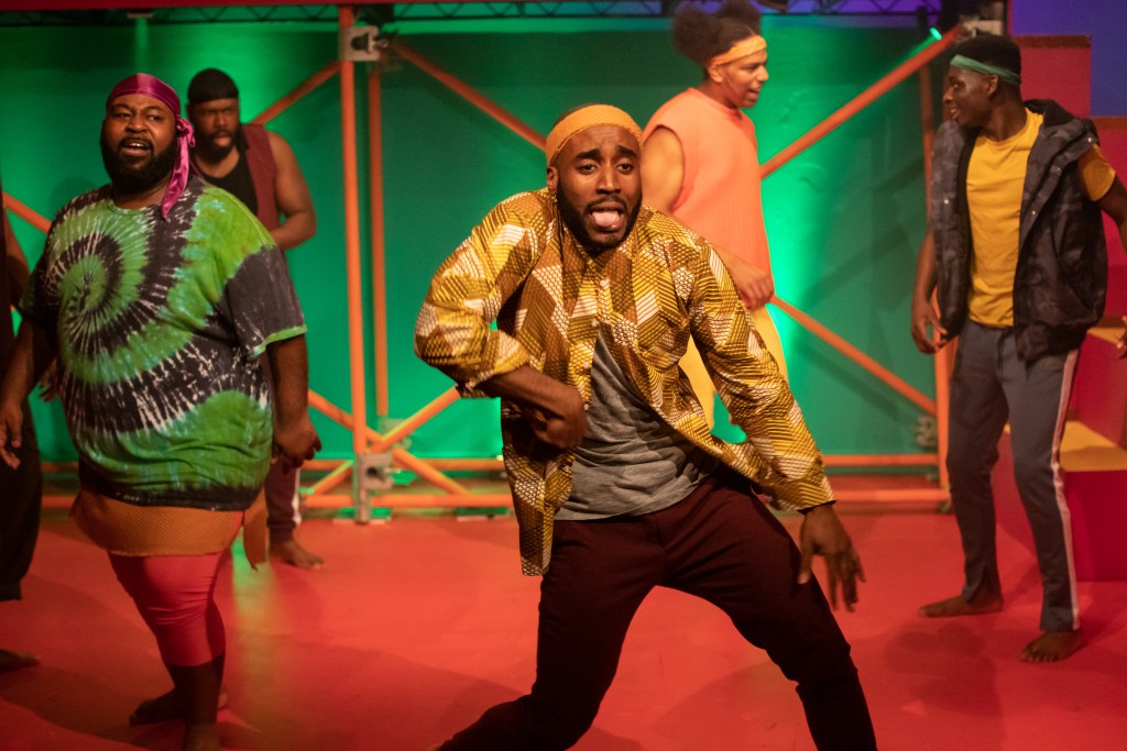 It is not just the title that indicates that For Black Boys Who Have Considered Suicide When the Hue Gets Too Heavy was inspired by Ntozake Shange’s seminal choreopoem, For Colored Girls Who Have Considered Suicide/When the Rainbow Is Enuf.. It is seen in the style, the decision to have the characters represented by different glaring colours through their costumes, the clear communication of their hopes and fears, the subjects that they tackle, that bind them all together. In the second half they swop, change, share costumes, metaphorically sharing their pain and stories.