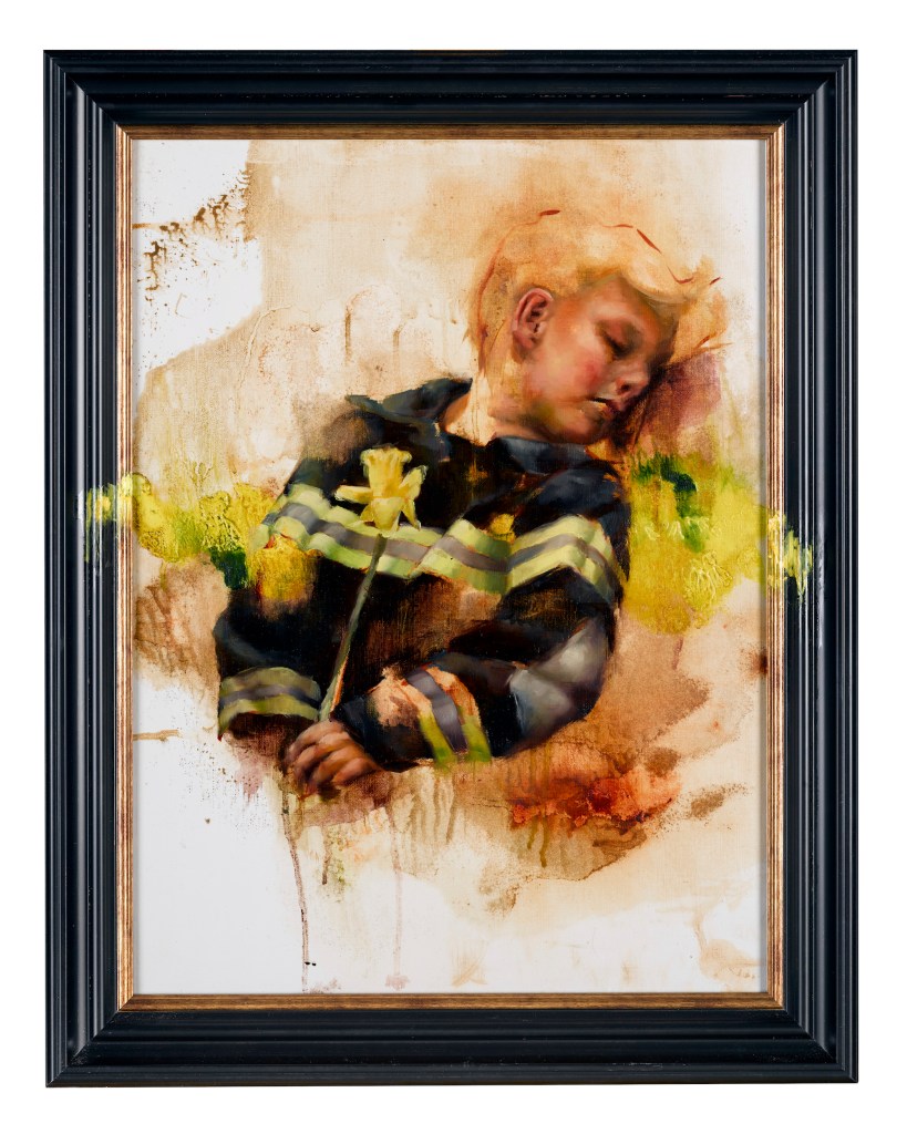 I also have a huge fascination for oil paint as a medium and I get excited by the multitude of unique marks and textures that organically arrive from mixing the pigment with different mediums. I am constantly searching for ways in which these forms can enhance the story of the subject.