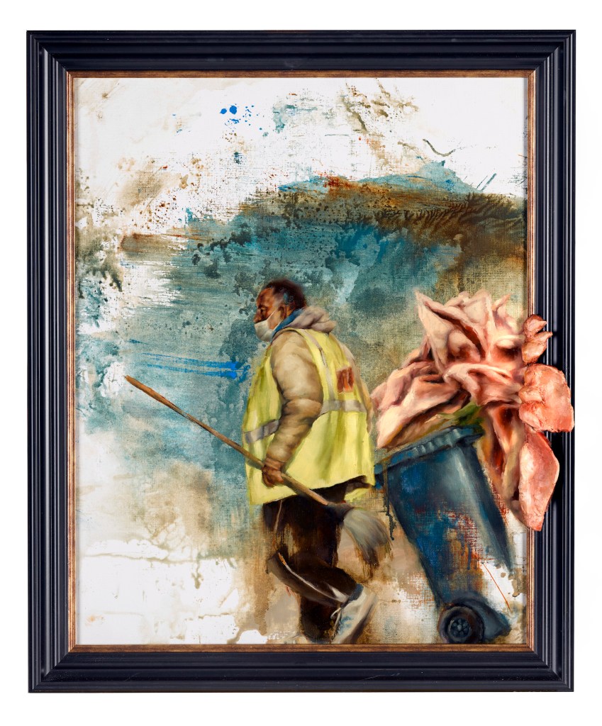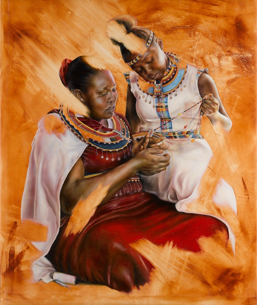 The word ‘fortitude’ means demonstrating courage in the face of adversity and/or pain. This is a concept which I strongly felt was present when I got to know the people who formed the paintings in this exhibition. The characters I was lucky enough to meet with in Kenya didn’t have much themselves, but their determination, generosity, and love in the face of hardships (advanced by the pandemic) was inspirational and I really wanted to get that across in the work. I believe too that due to their own plight with Covid 19 many members of the audience would be able to relate to this idea of tackling undesired circumstances with fortitude.