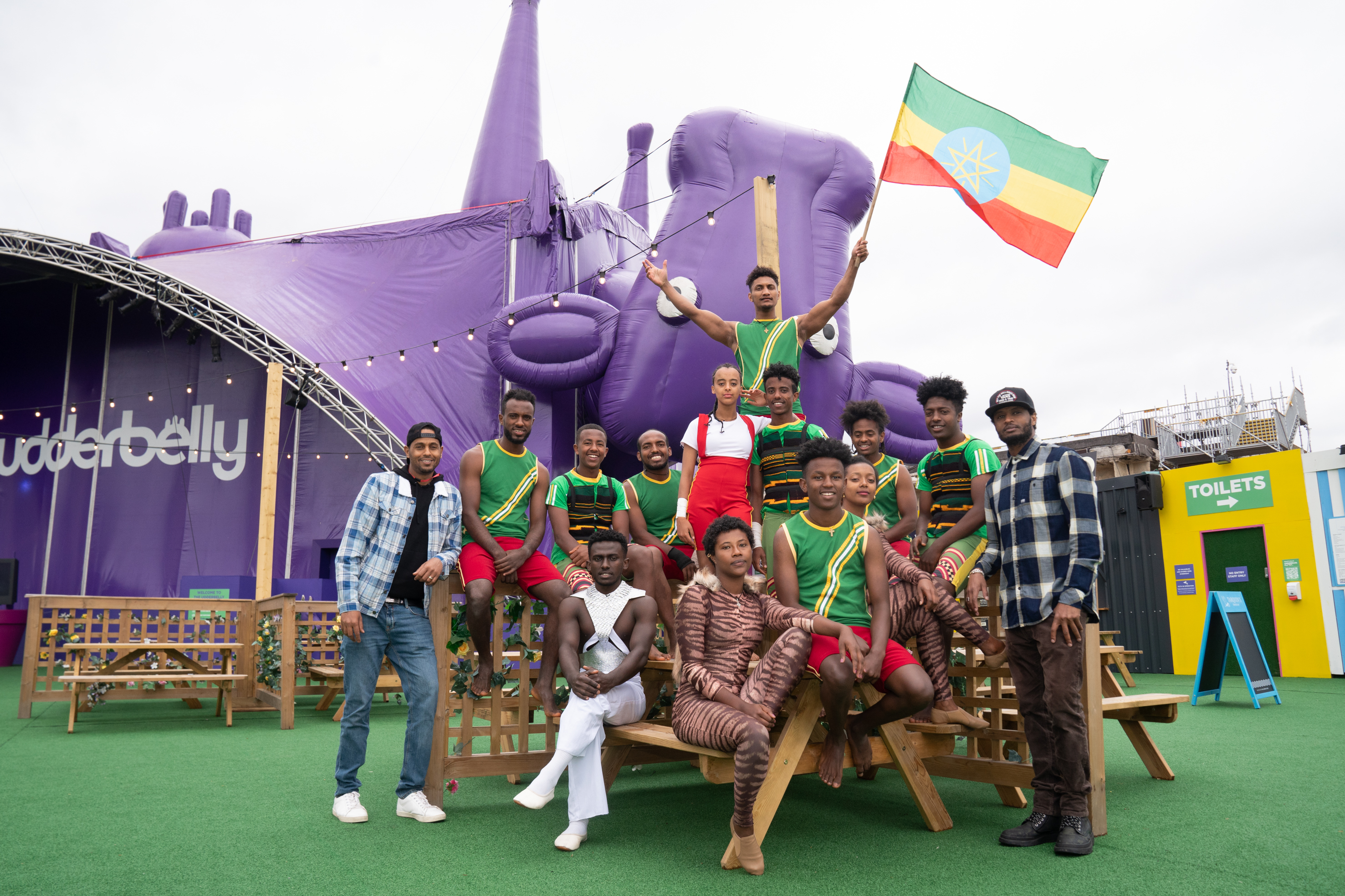 Co-founded and produced by Bibi Tesfamariam and Bichu Shimellis, who also directs, the 15-strong troupe will showcase incredible talent in the iconic upside down, purple cow, Udderbelly at Underbelly Festival Earl’s Court. There is contortion and rollerblading from Etsegenet Ashenafi and Semeret Getachew, Cyr Wheel from Hannah Tina alongside aerial flight from Bezawit Ashagre. Joining them are hoop-divers and Russian swing artists Behaylu Tesfaye, Cherenet Dereje and Dagmawi Fekeru, who perform awe-inspiring stunts with the youngest members of the troupe, Ezera Nigusse and Alemayehu Mulugeta. Dagmawi also performs IcarianGames with Zenebe Fantu and Betelhem Dejene leads the troupe in stunning displays of hand-vaulting and synchronised acrobatics.