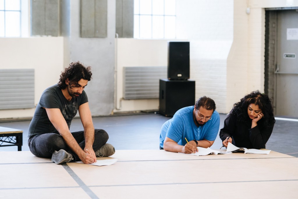 The Young Vic today releases images from the rehearsal room of Chasing Hares, a new play by award-winning playwright Sonali Bhattacharyya (Two Billion Beats) and directed by Milli Bhatia (seven methods of killing kylie jenner). The play, which won Theatre Uncut’s Political Playwriting Prize 2021, is set between the UK and West Bengal, and considers the power of storytelling in the struggle for a fairer world.