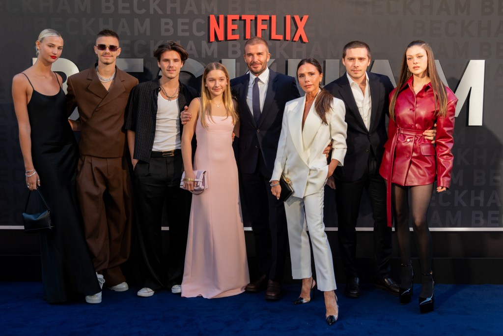 David was joined on the red carpet by his family, Victoria, Brooklyn & Nicola Peltz Beckham, Romeo & girlfriend Mia Regan, Cruz and Harper Beckham along with his parents Sandra and Ted Beckham and sisters Joanne Beckham and Lynne Beckham-Briggs.