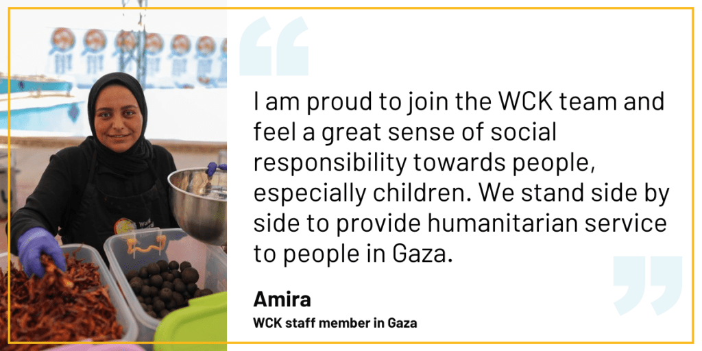 The kitchen has been named Zomi’s Kitchen, and the commitment to quality and the sense of purpose the women in this kitchen possess directly mirrors the personality of Zomi herself. Zomi was one of seven WCK team members killed on April 1, when IDF airstrikes targeted our humanitarian convoy in Gaza. Meet some of the women carrying on her legacy.