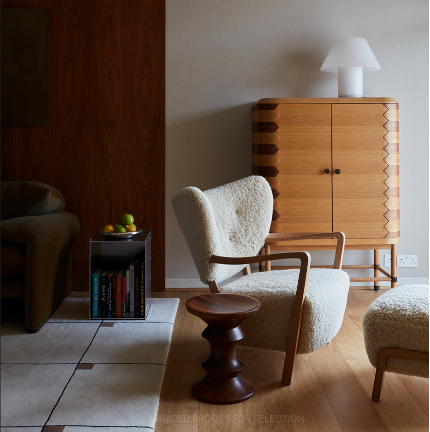 Complementing the architecture and honing on the previous elements, such as the original kitchenette and walnut paneling, Black & Milk created a new eclectic aesthetic, taking inspiration from Barbican cultural influences and refining them into a harmonious design. On unveiling the new style, the space is now filled with a collection of vintage and modern furniture and art and of great importance on the quality of the materials and design detail was considered when renovating the Grade II-listed flat.
