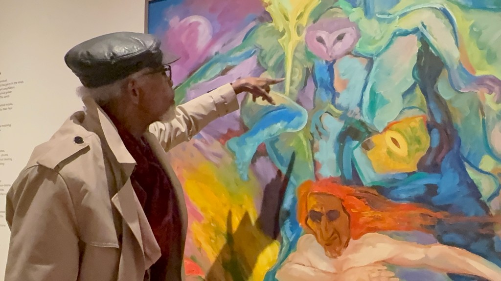 With over 40 paintings, spanning over six decades, the exhibition is a showcase of Lyons’ profound impact on British art, literature, and art education, with an emphasis on his interpretation of Trinidadian folklore and mythology through both visual art and poetry. It encompasses a variety of mediums, with the walls adorned with his poetry alongside paintings, drawings, woodcuts, and a curated selection of small sculptures and sketchbooks.