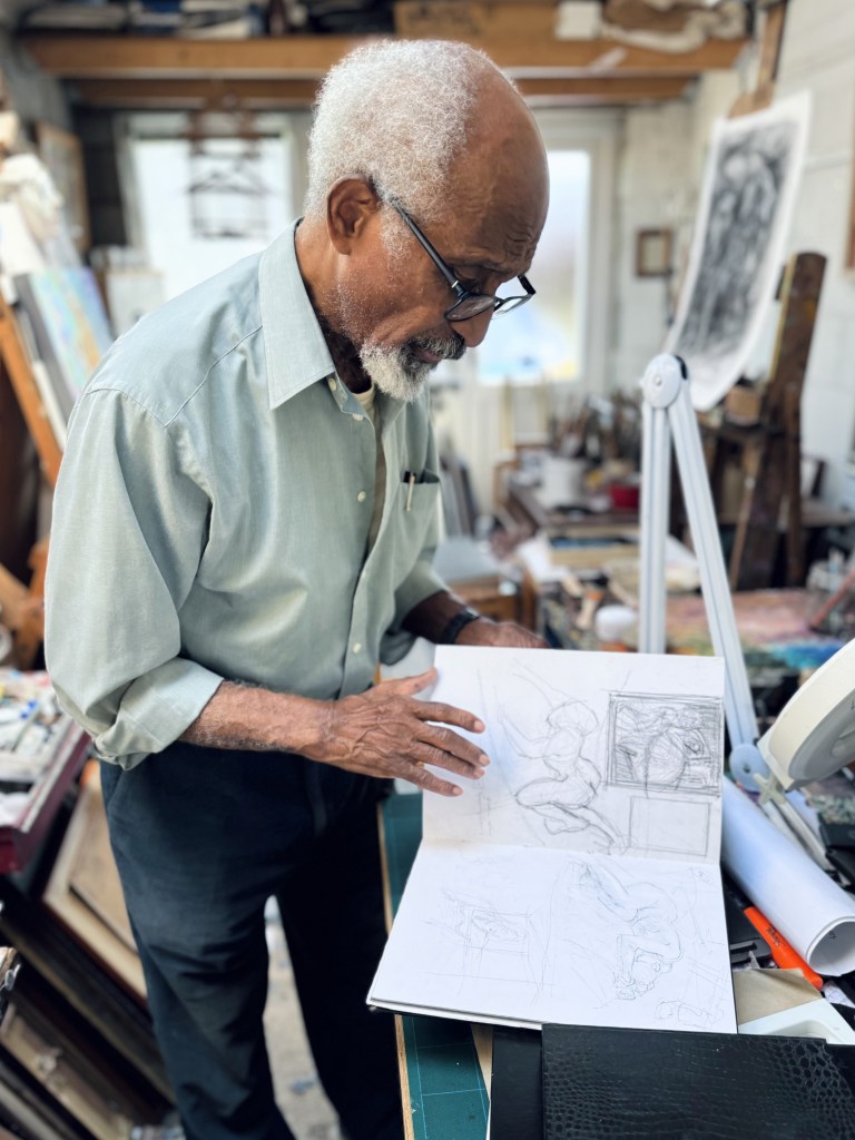 At 91, Lyons’ creativity remains as vibrant as ever. His recent exhibitions and continued literary work attest to the lasting relevance of his voice in contemporary art and poetry. Addressing the elephant in the room, this is his first major exhibition. I asked how the Black Lives Matter movement has contributed to shining a light on Black artists, Lyons responded: “Black lives matter because we come from a culture with rich folklore. We are all part of a tiny cosmic speck we call Earth, and one of the largest continents is Africa—my family came from there. It matters to me, really, because we are all human. If you scratch the skin of a white person and a Black person, what comes out is the colour red. There are many examples that tell us about the unification of the human race. Aside from social aspects, we are all human—and that is what I say.”