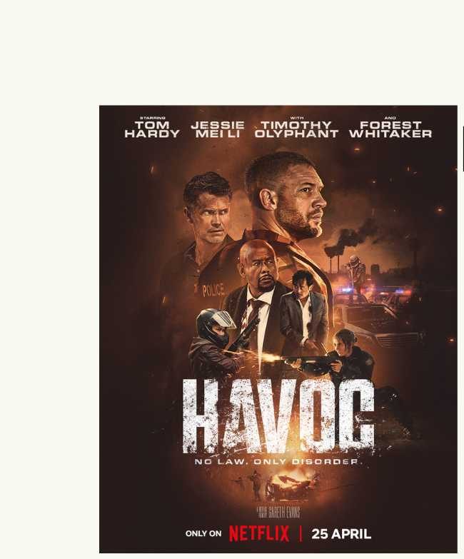 #HAVOC is a high octane action thriller written and directed by Gareth Evans (The Raid, Gangs of London), and starring Tom Hardy, Jessie Mei Li, Justin Cornwell, Quelin Sepulveda, Luis Guzmán, Michelle Waterson, Sunny Pang, Jim Caesar, Xelia Mendes-Jones with Yeo Yann Yann, Timothy Olyphant, and #ForestWhitaker. #Tariffs