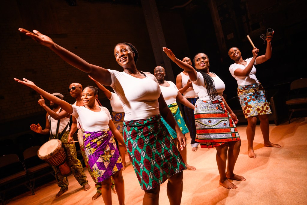 FEMI: This is a rare, stripped-back production—told in the round, akin to the African oral storytelling tradition. There are minimal props, no recorded sound. All music is performed live by a trio of multi-instrumentalists. Songs are sung without amplification, and movement is deeply woven into the narrative.