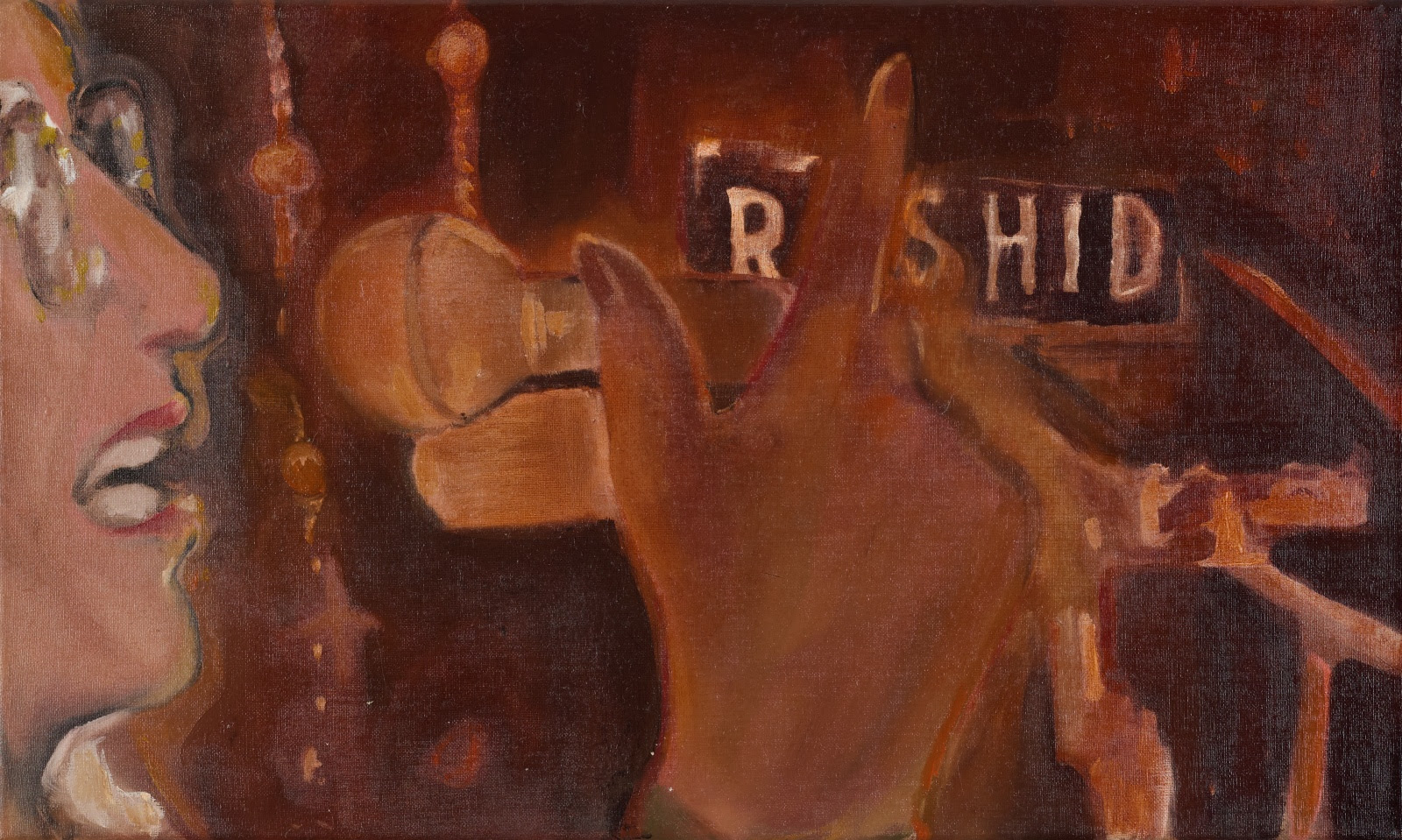 As the series was being developed, tension between India and Pakistan nearly erupted in nuclear war. An atmosphere of hysteria, fear and paranoia can be detected in the paintings, with every gesture seemingly under scrutiny, faces frozen or unravelling and the palette taking on toxic hues. The works speak together of this feverish contest of patriotism whose shared language calls into question the legacy of a colonial border.
