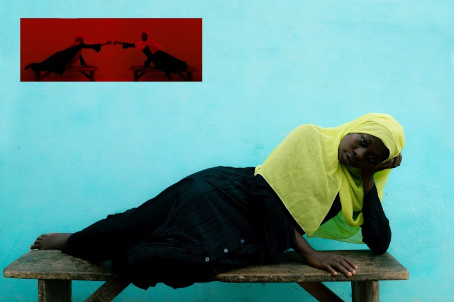 Across the exhibition, individual practices unfold through distinct gestures and narratives: portraits from Djibril Dramé’s Migration and Identity series appear woven into rice bags marked by labour and reuse; Nuits Balnéaires’ work such as Jour de fête transforms a yam-festival procession into a choreography of transmission; and Sharon Walters’ silhouette-like works gather the visual rhythms of Lagos into quiet expressions of nostalgia.